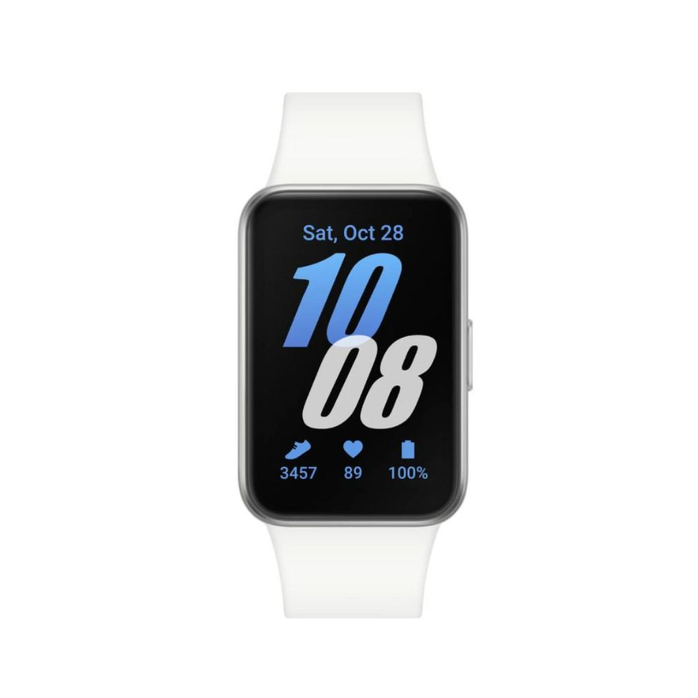 - The Samsung GalaxyFit3 Smart Watch combines sleek design with advanced functionality to enhance your daily life. With its large AMOLED display featuring 2.5D curved glass and aluminum body, this smartwatch offers a premium look and feel that complements any style. Enjoy up to 13 days of battery backup on a single charge, or quickly recharge to 65% in just 30 minutes, ensuring you stay connected and focused on your fitness goals without worrying about running out of power.